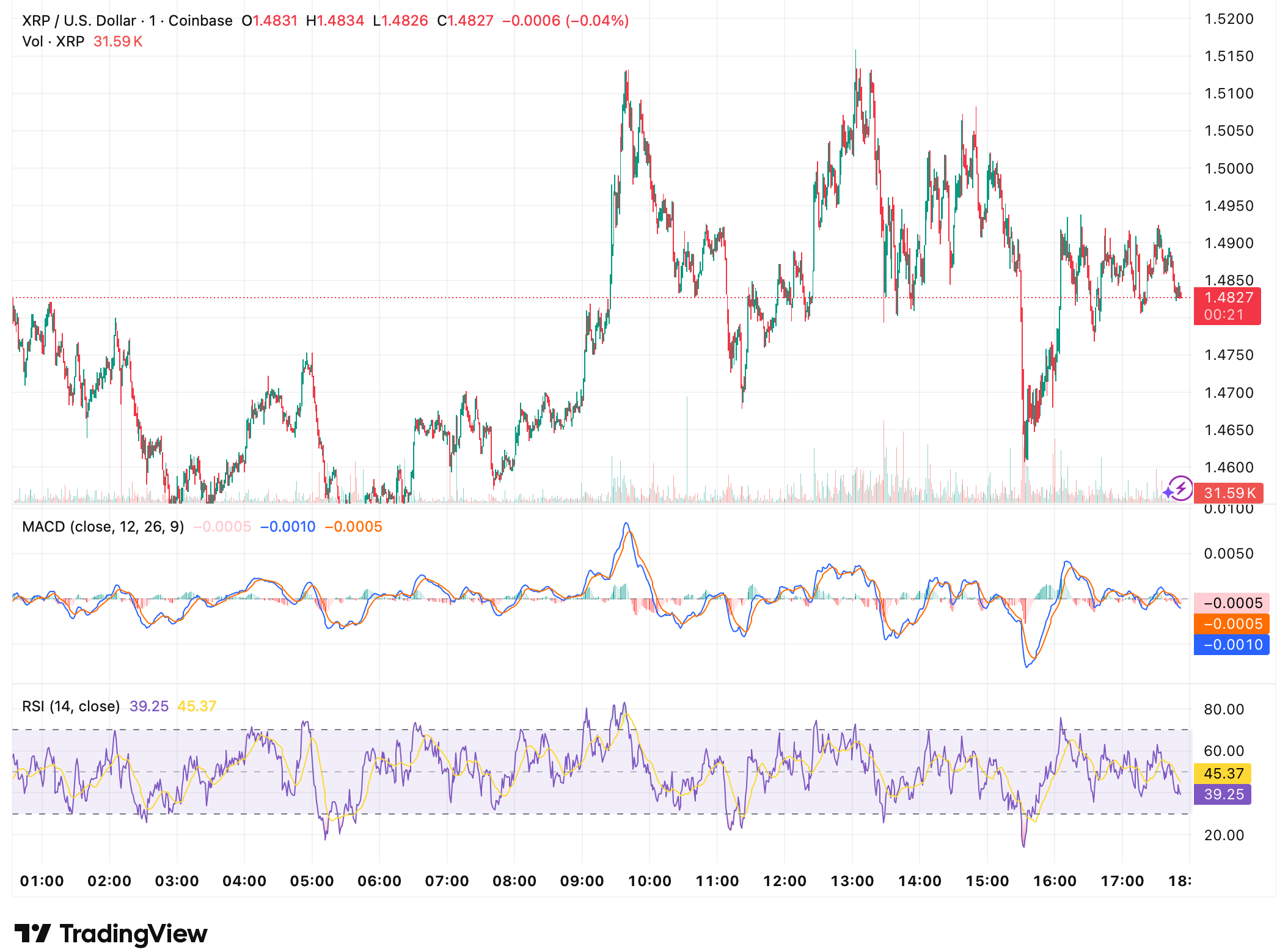 Technical Picture: XRP Consolidates Near $1.48 as Momentum Softens