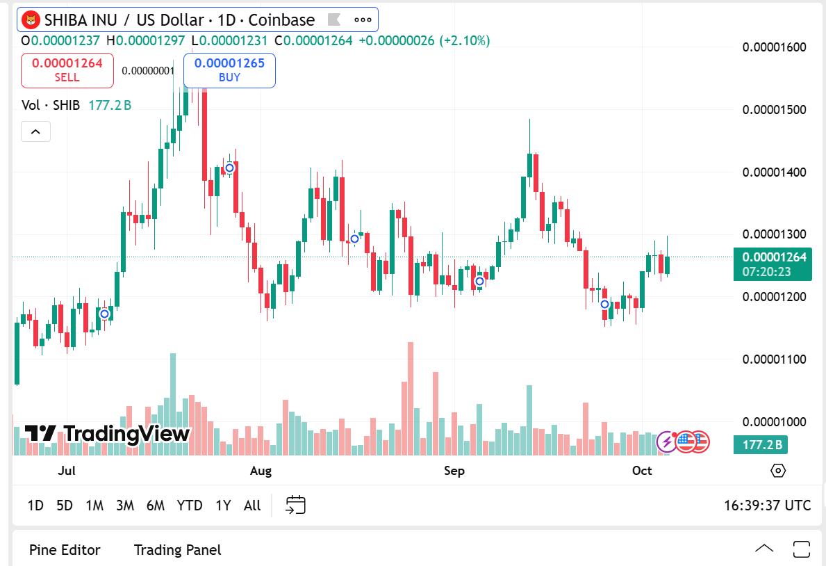 The Shiba Inu price is $0.00001264, rising 2.77%, with a market capitalization of $7.54 billion and a trading volume of $262.24 million — a 19.85% increase. The rise reflects the continued flow of activity from retail traders, with long-term holders still confident in SHIB’s long-term prospects.