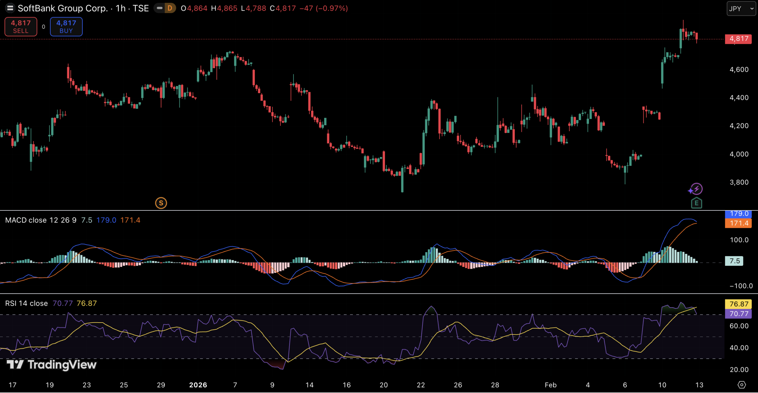 SoftBank shares were trading around ¥4,817 on the Tokyo Stock Exchange following the earnings release.