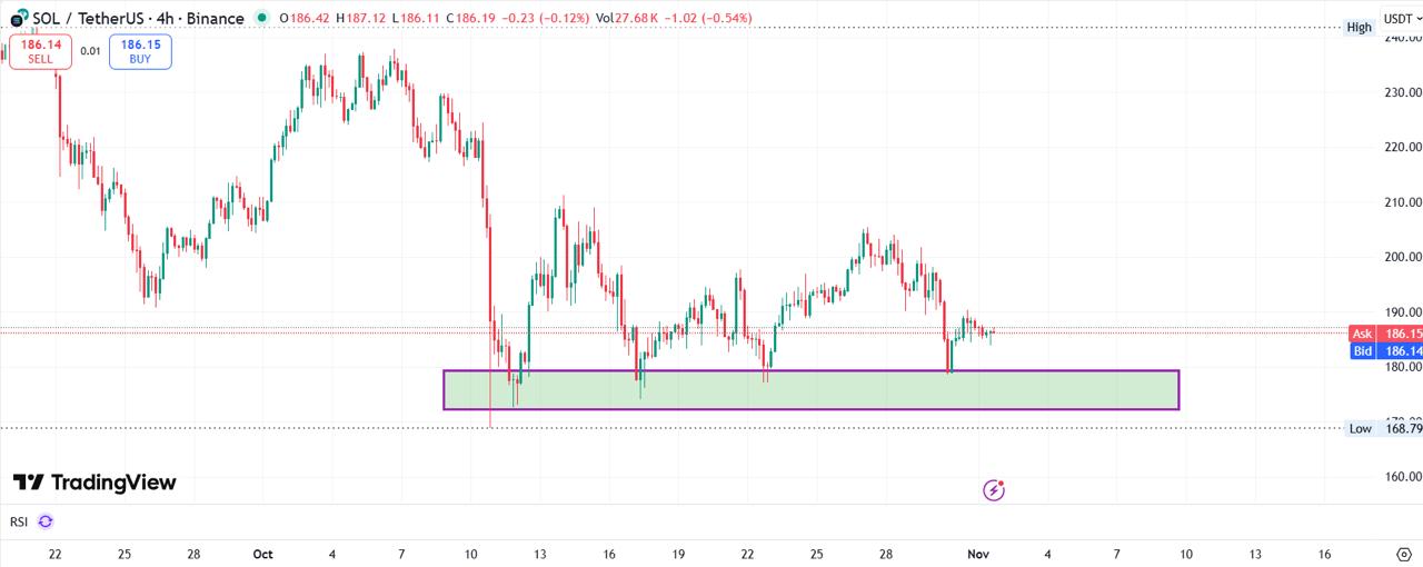 For the third time this quarter, Solana (SOL) has bounced off the key $180 support zone, proving once again that buyers are still defending the level despite broader market fatigue.