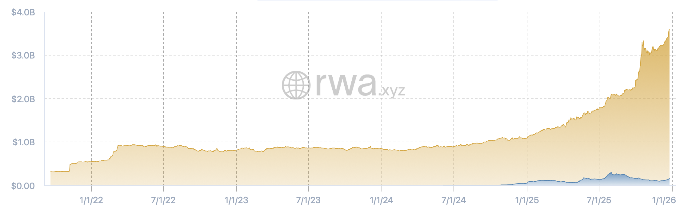 The broader performance trend further underlines gold’s structural strength. Over the past month, prices have risen by nearly 8%, while six-month gains exceed 36%. On a yearly basis, gold is up more than 70%, with multi-year returns showing even sharper appreciation. This sustained advance across multiple time frames has strengthened investor confidence in gold as a store of value, a dynamic that has directly supported demand for tokenized gold products that track physical prices while offering onchain transferability and continuous market access.