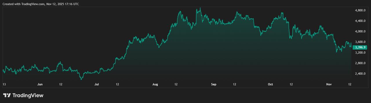 Ethereum (ETH) remains the second-largest cryptocurrency with a market cap of about $410 billion and trades near $3,400. Its ecosystem dominates decentralized finance and NFT activity, making it a critical part of the broader blockchain economy.
