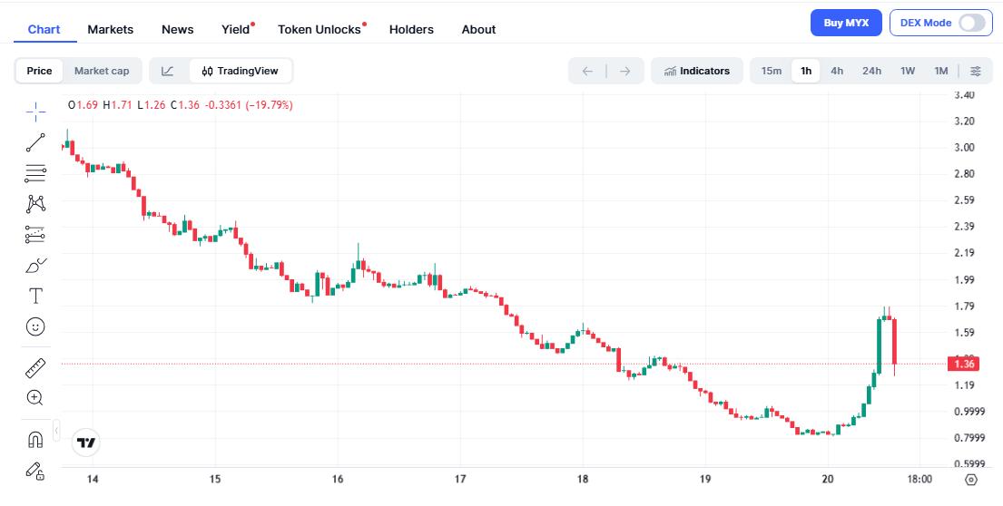 MYX Finance (MYX) Jumps 46.24% but Encounters Volatility Near $1.70 High