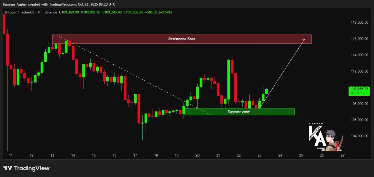 Balancing Brandt’s caution, other analysts have turned optimistic. Market strategist Kamran Asghar shares his bullish sentiment on X, noting that “BTC holding the support zone opens the path to retesting $116K.”