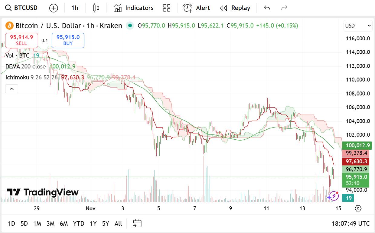 The Bitcoin price slipped to reach $96,989.54, shedding 3.51% over the last 24 hours. Its market cap has reached $1.93 trillion, while trading volume rose to $127.91 billion – climbing 61.51%. The surge in activity demonstrates that large holders have been tactically adjusting their exposure to protect gains at earlier points in the cycle.