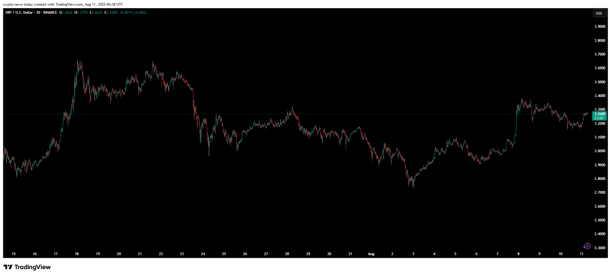 At the time of writing, XRP is priced at $3.26 after gaining 9.8% in the past week.