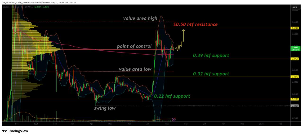 Stellar isn’t just coasting on XRP’s breeze; it has its own momentum. XLM’s recent price action shows recovery and breakout structure: according to one technical analysis piece, XLM reclaimed key levels and built higher lows around $0.39, putting the next target near $0.50.