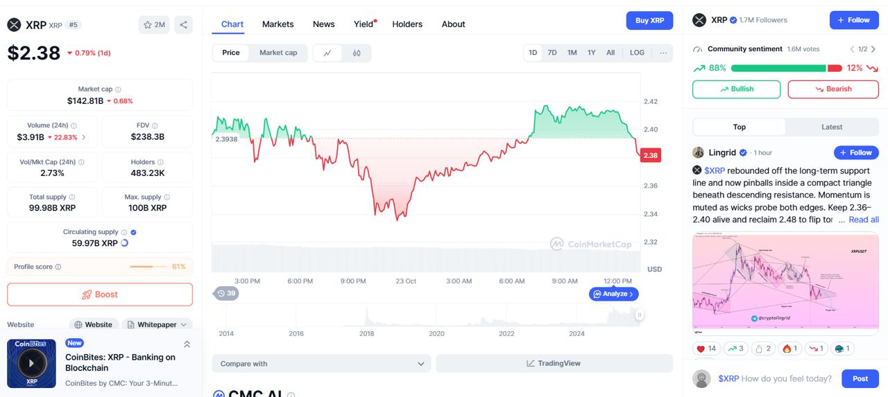 Traders are back watching XRP after a choppy week across crypto. Headlines about government funding progress and fresh ETF chatter helped steady sentiment, and XRP nudged higher as attention returned to on-chain flows and key chart levels.