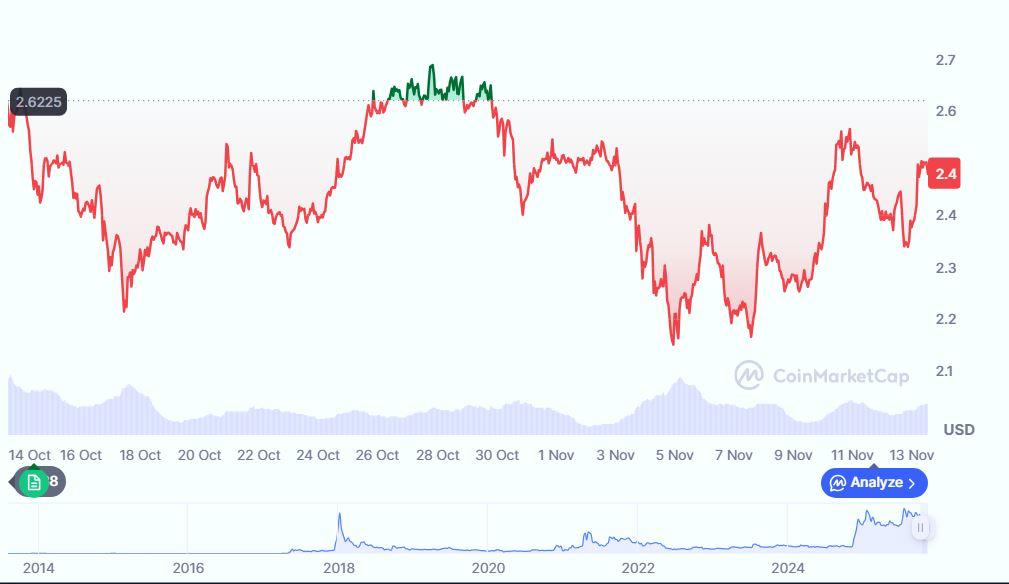 XRP has been trading around $2.50 on 13 November with a market cap near $150 billion. The recent rise came after news of multiple pending spot-ETF filings for XRP, which lifted institutional interest and drove a 12% jump in 24 hours. XRP price prediction suggests that if the ETF approval comes through, XRP could aim toward $5.