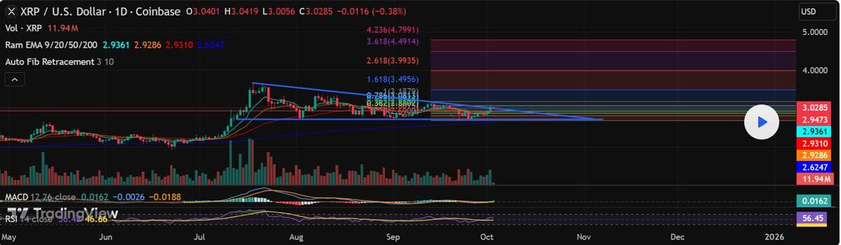 Right now, XRP trades between $2.88 and $3.10 depending on the venue, with volume flipping hot and cold as risk appetite swings. The near-term XRP price prediction from technical desks targets a clean break toward $4.00 if resistance gives way, with stretch models sketching $8 to $9 over a longer window.