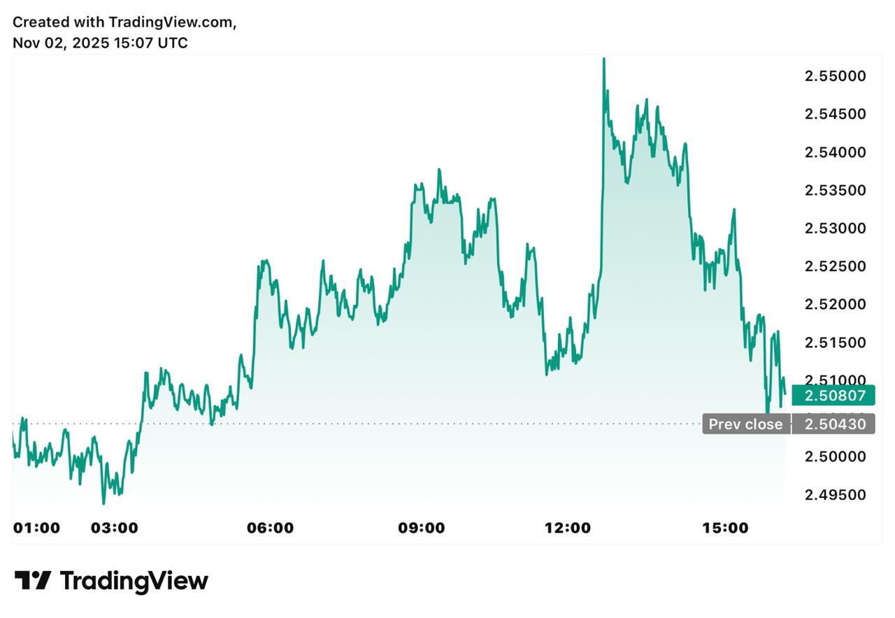 XRP is currently trading close to $2.50, after recovering from support at about $2.40. A tightening pattern between $2.45 and $2.50, which frequently comes before major breakouts, has been noted by technical experts. Santiment’s on-chain data shows that whale wallets with more than 10 million XRP have had an almost 4% increase in balances this month, indicating that large investors are once again quietly buying up.